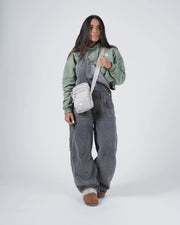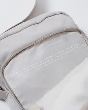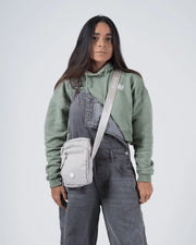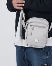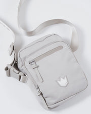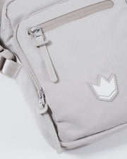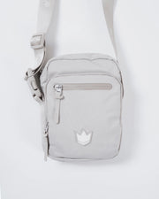 The Kingz Side Bag features a sleek portrait-profile structure with a multi-compartment design, a divided main pocket, a custom shoulder strap, and unique zipper pullers.